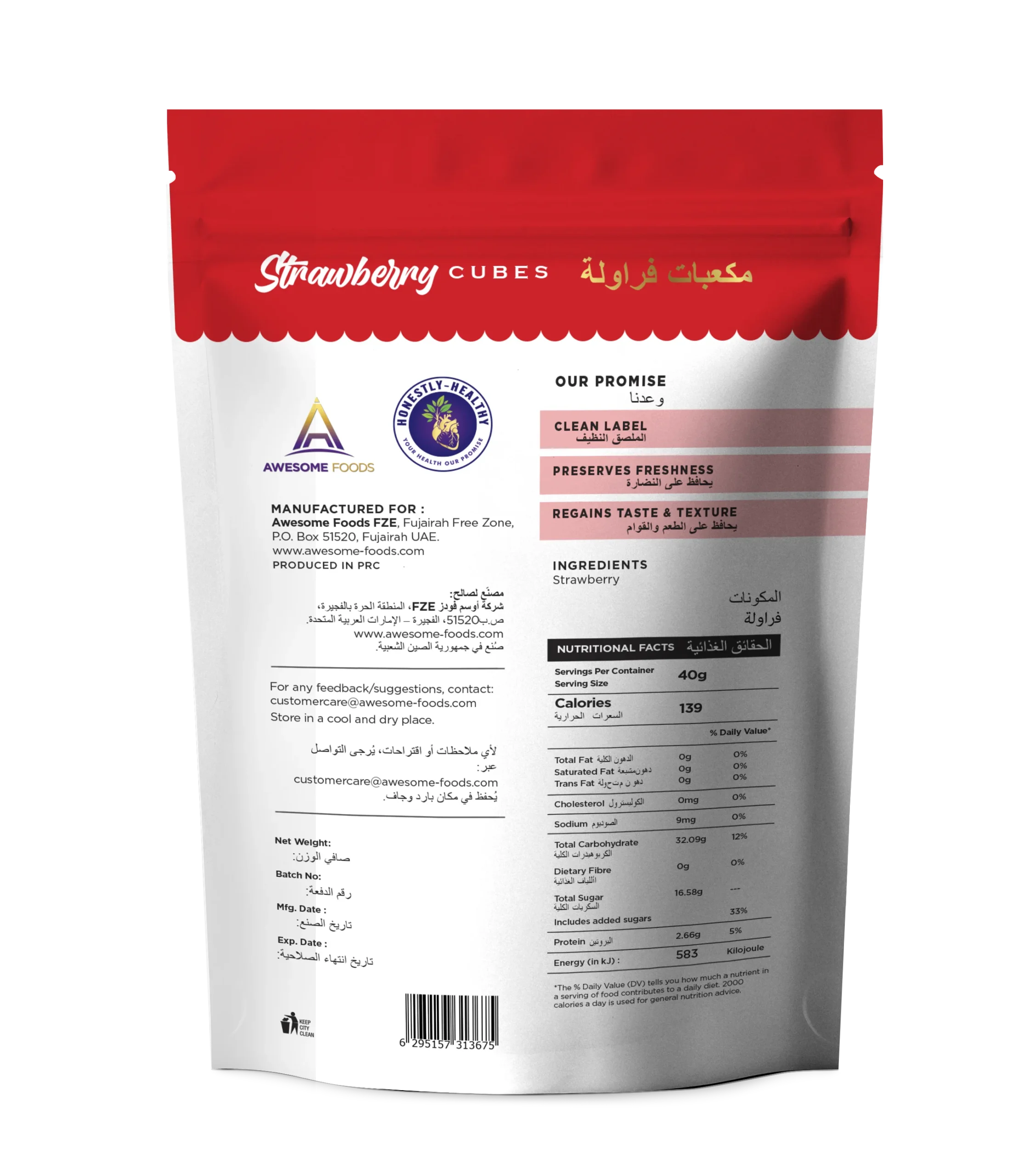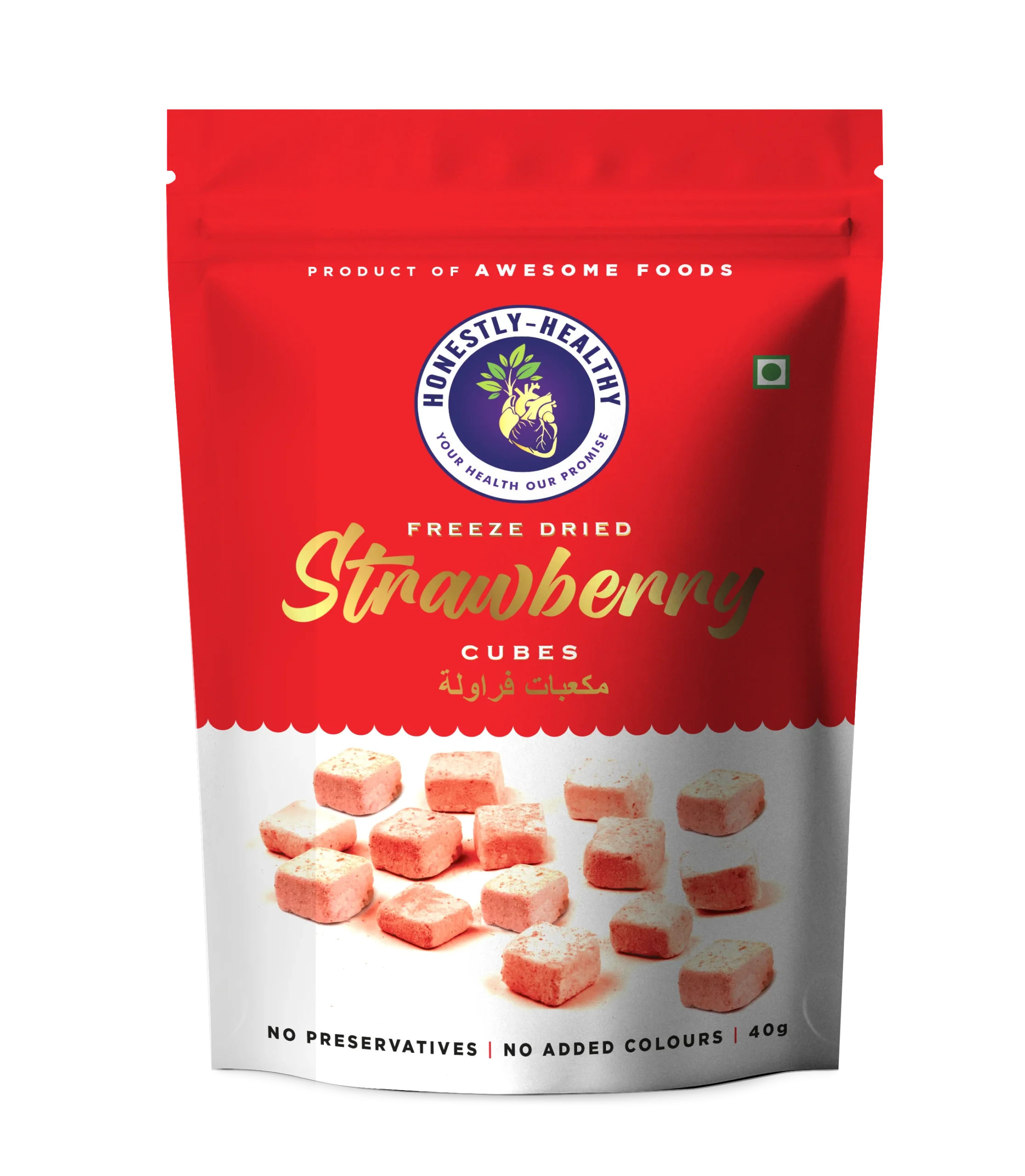 Whole strawberry cubes lightly sweetened with sugar – fully transparent ingredient list. Our freeze-dry method keeps the berry’s aroma and most nutrients while adding gentle sweetness. Perfect for cereals, kids’ snacks and baking where a touch of sugar is desired.
